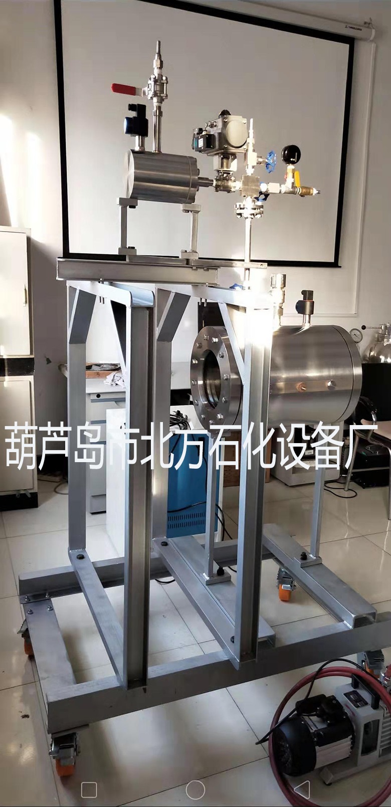 2、加熱爆炸反應(yīng)器材質(zhì):不銹鋼s30408,規(guī)格:爆炸腔內(nèi)徑φ300mmx350mm。承耐爆炸極限壓力15mpa(瞬時),承耐爆炸火焰溫度1200℃(瞬時),真空度0.09mpa,內(nèi)腔表面精度0.4um。兩端面為對視大觀測窗口。爆炸反應(yīng)器上部安裝連接燃料儲罐進(jìn)氣排氣真空管路,測溫?zé)犭娕及惭b在反應(yīng)器上部,點火器電極安裝在爆炸反應(yīng)器的中心位置,8套傳感器安裝在爆炸反應(yīng)器兩側(cè)對稱中心水平線上,并連接同步多通道數(shù)據(jù)采集系統(tǒng)。爆破片安全裝置安裝在爆炸反應(yīng)器底部。爆炸反應(yīng)器外表面安裝加熱衣套進(jìn)行腔內(nèi)加溫。
