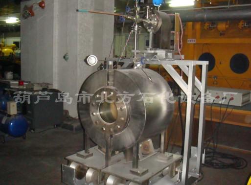2、加熱爆炸反應(yīng)器材質(zhì):不銹鋼s30408,規(guī)格:爆炸腔內(nèi)徑φ300mmx350mm。承耐爆炸極限壓力15mpa(瞬時),承耐爆炸火焰溫度1200℃(瞬時),真空度0.09mpa,內(nèi)腔表面精度0.4um。兩端面為對視大觀測窗口。爆炸反應(yīng)器上部安裝連接燃料儲罐進(jìn)氣排氣真空管路,測溫?zé)犭娕及惭b在反應(yīng)器上部,點(diǎn)火器電極安裝在爆炸反應(yīng)器的中心位置,8套傳感器安裝在爆炸反應(yīng)器兩側(cè)對稱中心水平線上,并連接同步多通道數(shù)據(jù)采集系統(tǒng)。爆破片安全裝置安裝在爆炸反應(yīng)器底部。爆炸反應(yīng)器外表面安裝紅外線加熱器進(jìn)行腔內(nèi)加溫。
